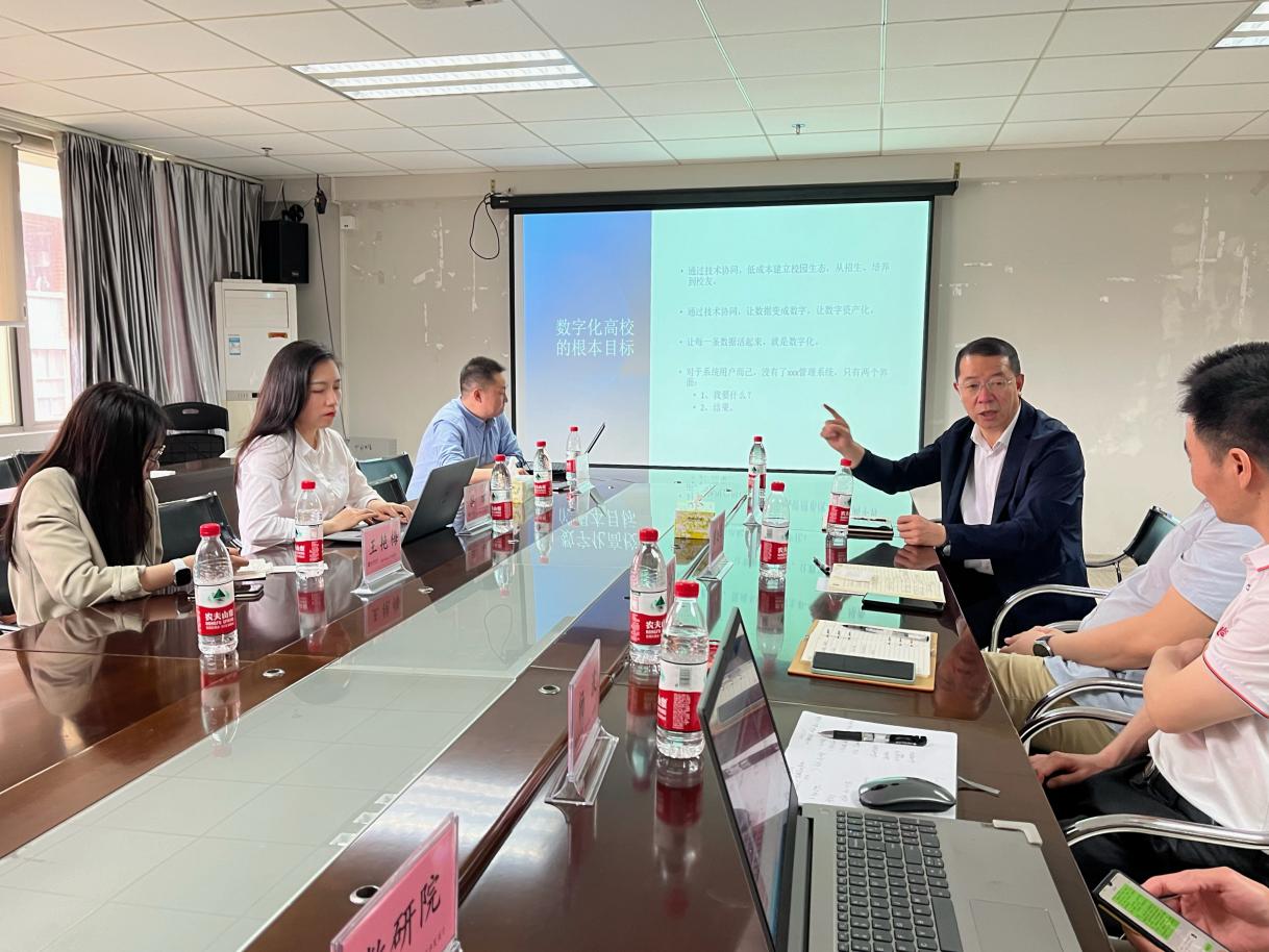 交流会上,龙总梳理了行业现状、设计思路、难点问题和系统收益等情况,指出公司的业务特点在于提供定制化服务,通过搭建“三中心一平台”(即数据融合服务平台、学生发展中心、教工发展中心和行政管理中心),希望以技术协同的模式,低成本建立校园生态,使得数据能够变为数字,实现数字资产化和数字化转型。