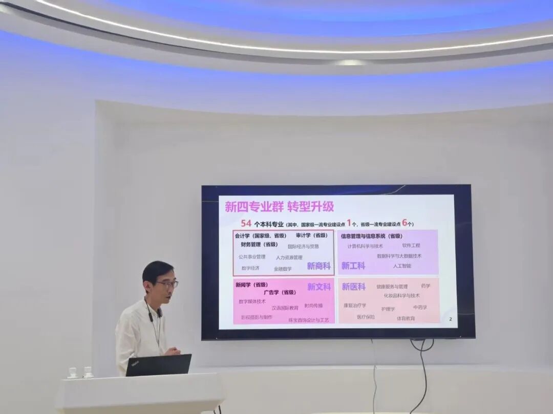 ▲华商科教集团副总裁兼总会计师廖旭东做交流分享