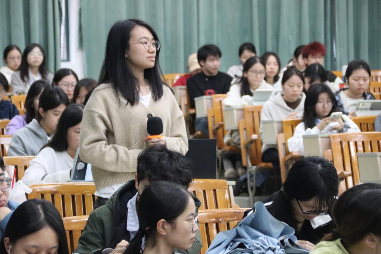 互动环节中,面对学生“如何应对AI时代技术挑战”的提问,杨老师结合自身经历,鼓励大家夯实专业基础,注重培养“复杂问题定义”与“跨场景适应”能力,通过“理论+实践”相结合的方式提升自身不可替代性。