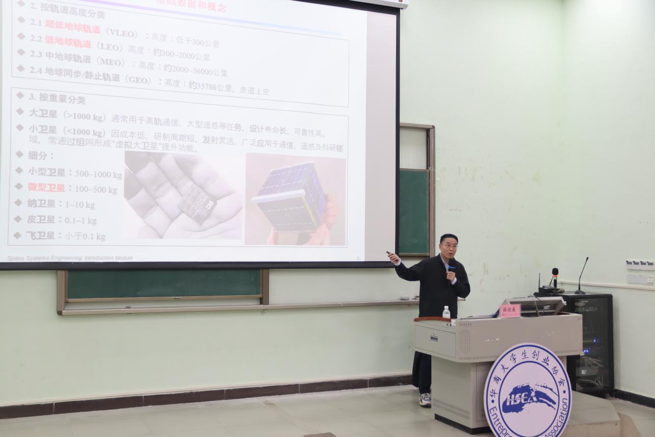 张迎春教授以《星联网时代,我的微小卫星研制历程的回顾与感想》为题,结合自身二十余年参与我国多颗微小卫星及试验卫星研制的经历,分享了航天工程的系统思维与技术突破故事。演讲中,张教授回顾了从1998年参与“试验卫星一号”研制的起步阶段,到带领团队攻克超低轨卫星电推进技术等关键突破历程,重点介绍了卫星研制中“风险预控”“系统工程管理”等核心经验。