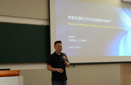 为迎接学校二十周年校庆,共探数字化技术前沿趋势,2025年10月28日,“华商赋能·智启未来”系列讲座“数字化技术赋能未来,共启智慧新篇章”在广州华商学院肇庆校区顺利举办。本次讲座以“改变生活和工作方式的数字化技术”为主题,特邀华商数字化技术研究院院长彭秀东教授主讲,超200名师生参加。讲座由校长助理覃少冰主持。