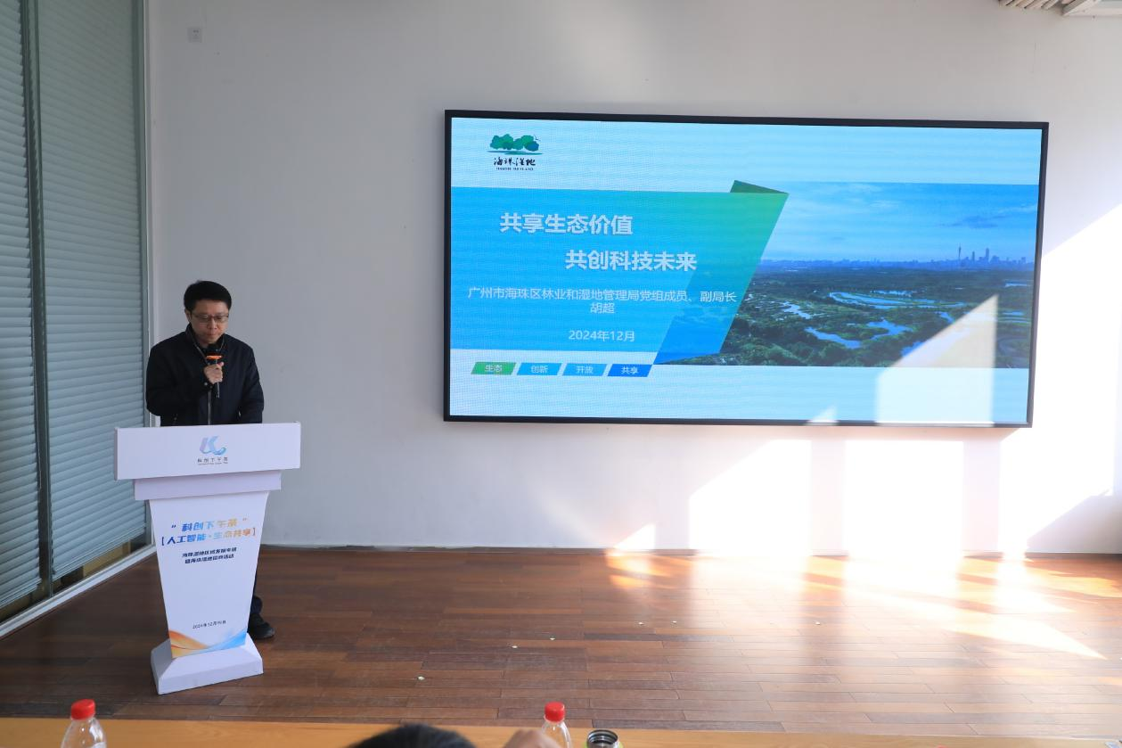 海珠区科学技术协会主席、一级调研员杨坚在现场致辞中提到,近年来海珠区聚集创新驱动,构建了以人工智能、数字经济等为主导的现代产业体系,为区域发展注入了强劲动力,同时,海珠区也坚守着生态优先,积极探索湿地生态修复与科技赋能的协同发展模式,让海珠湿地成为城市绿肺与科技创新的典范。他表示,希望借助本次“科创下午茶”集结行业精英的智慧,共绘海珠湿地智慧生态新蓝图。