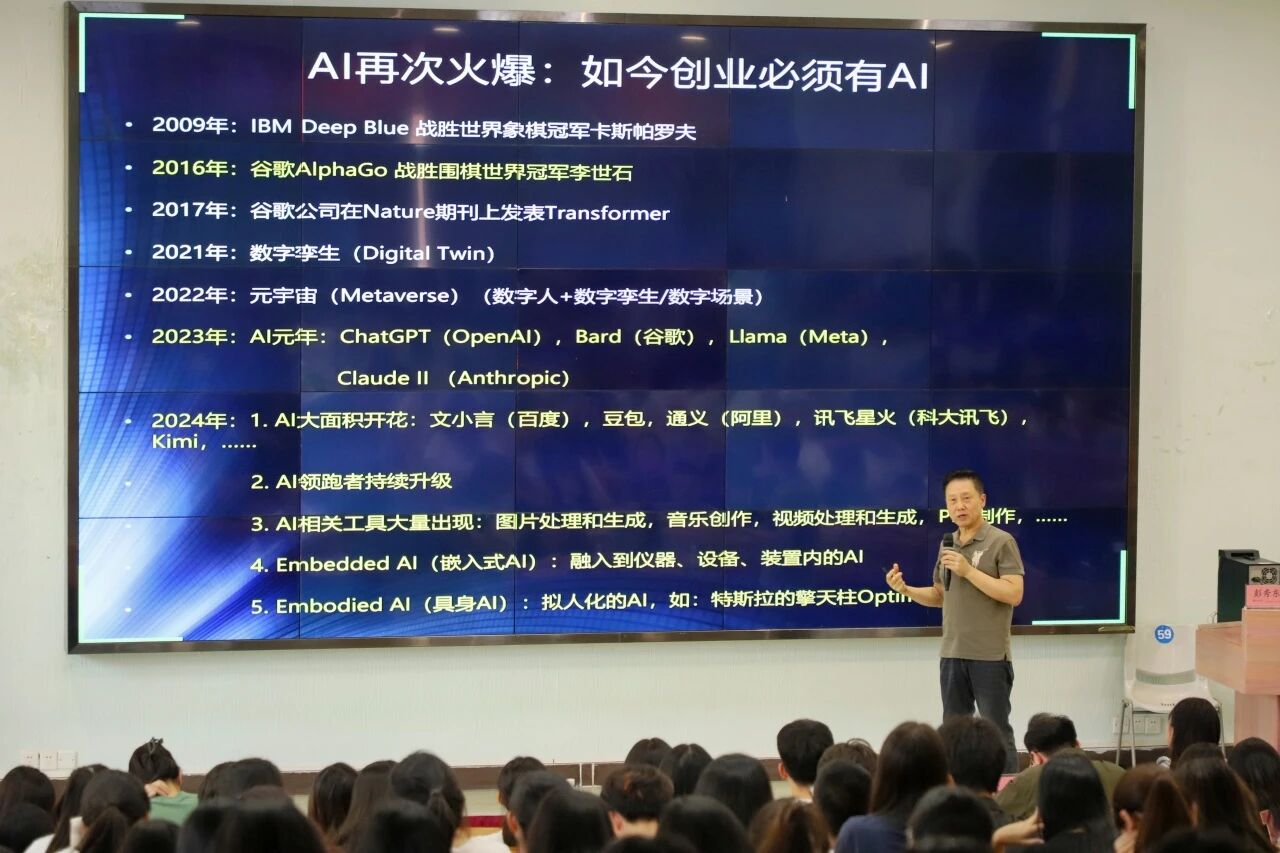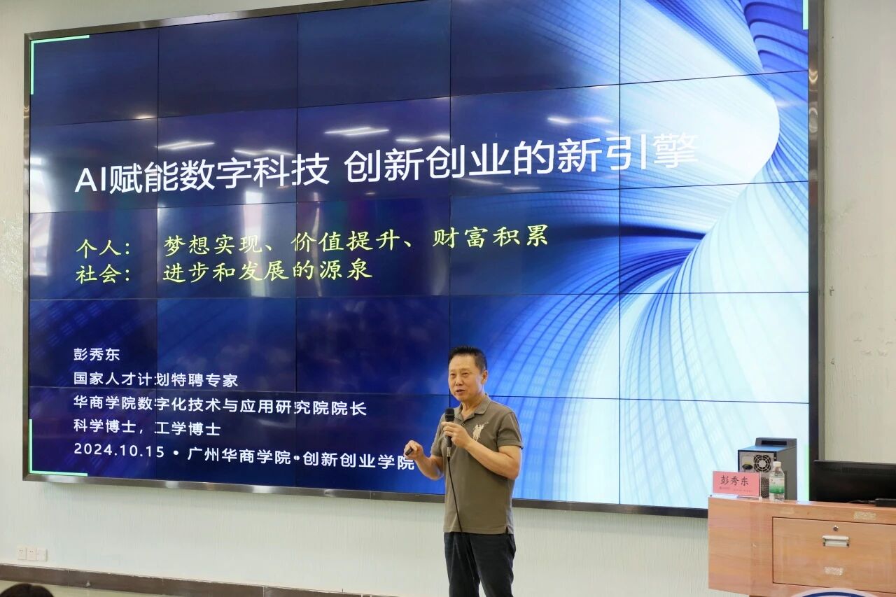 10月15日下午,由广州华商学院就业创业e站主办,广州华商学院学生就业创业处、广州华商学院创新创业学院、华商众创孵化基地承办,广州华商学院大学生创业协会协办的《AI赋能数字科技,创新创业的新引擎》专题讲座在广州校区励志楼C408(主会场)、肇庆校区6号楼201(分会场)同步举行。